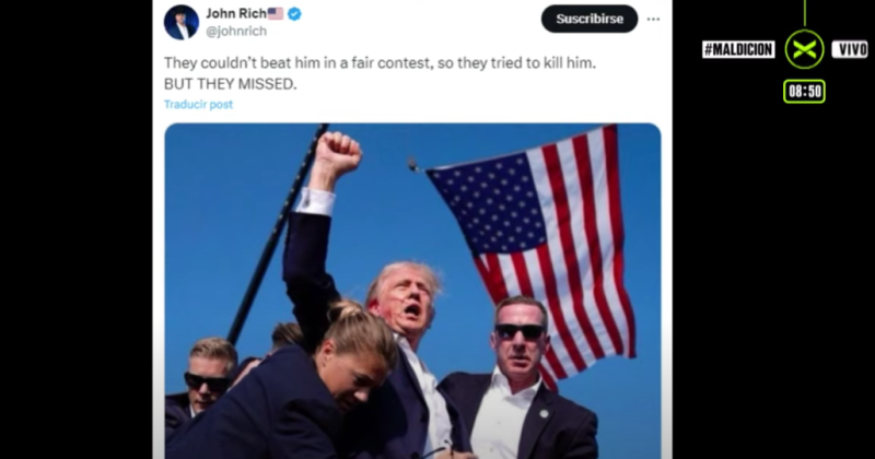 "Continúo con los últimos que me quedan. John Rich es parte de un dúo musical country que publicó esta foto viral de Trump con el puño en alto diciendo intentaron mataro pero fallaron", expresó el compañero de Pergolini Dany Jiménez en su columna sobre la opinión de los músicos acerca del atentado a Trump.
