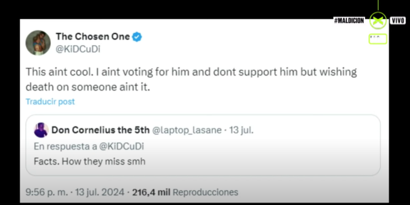 "El que sigue es el rapero KidCudi, quien dijo esto no está bien, no voy a votar por él y no lo apoyo, pero desearle la muerte a alguien realmente no va conmigo" fue otra de las imágenes que mostró Dany.