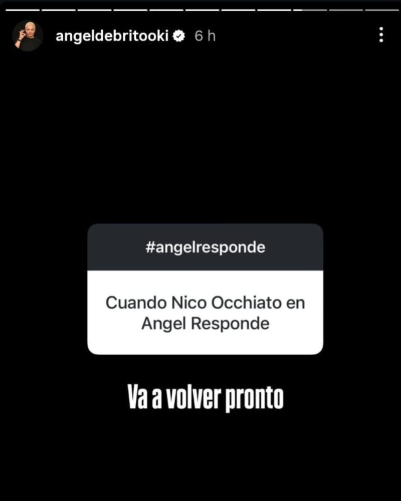 El periodista suele interactuar con sus seguidores y responder preguntas. Ahí dijeron presentes algunos miembros de la comunidad Luzu para preguntarle a Ángel por Nicolás Occhiato y una posible visita a Ángel Responde. Fue acá donde el conductor decidió ser determinante: "Va a volver pronto".