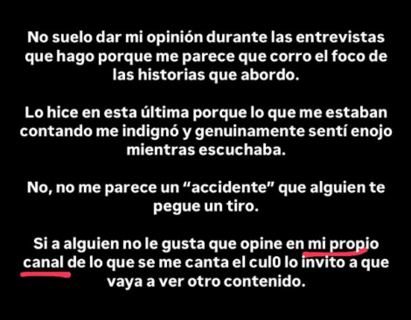 "Me cambió todo en la vida" relató el entrevistado. Cuando habló de "accidente", provocó la reacción del conductor, quien no coincidió con el término ya que fue un hecho generado por delincuentes. Acá se generó el mayor debate,