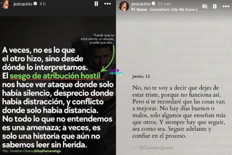 Y es que la modelo reapareció durante los últimos minutos en sus redes para publicar dos historias de Instagram. Se trata de frases, en las cuales ella metió palabras propias que cuestan adivinar. Es por esto que trataron de analizarlas en vivo.