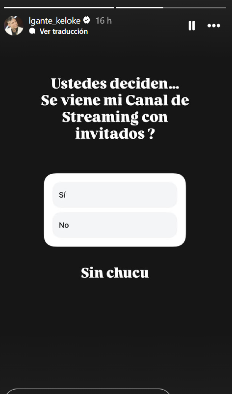 Ahora, buscará un camino propio. En una historia de Instagram, armó una encuesta donde le preguntó a sus seguidores: "Ustedes deciden... ¿Se viene mi canal de streaming con invitados? Sin chucu". El resultado, por lejos, terminó dando afirmativamente, la gente apoyó al músico y referente de la cumbia 420.