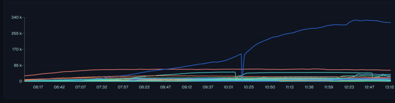 Luego, el stream naufragó entre los 310k y los 314k como promedio, extendiendo su franja horaria por motivos obvios, haciendo que Patria y Familia comience mucho más tarde. El pico mencionado anteriormente coincide con lo acontecido junto a Ángela Torres, donde ambas cantaron a dúo y se viralizaron por completo en todas las redes.