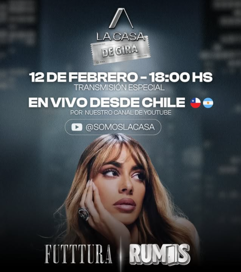 Tini Stoessel eligió a La Casa para que la acompañe en su gira FUTTTURA, en esta oportunidad desde Chile. Rumis prenderá una transmisión especial desde las 18 horas para activar una previa especial del concierto, tal y como sucedió en Argentina.