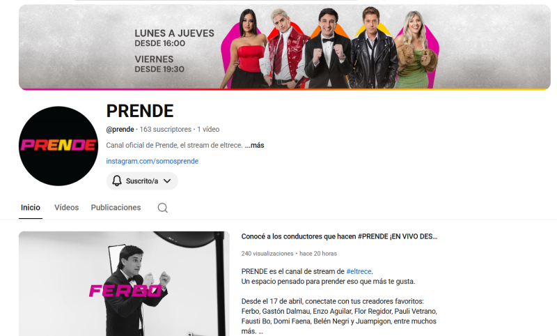 A pesar de seguir formando parte de ElTrece, "Prende" abrió su propio canal de streaming y transmitirá desde ahí.